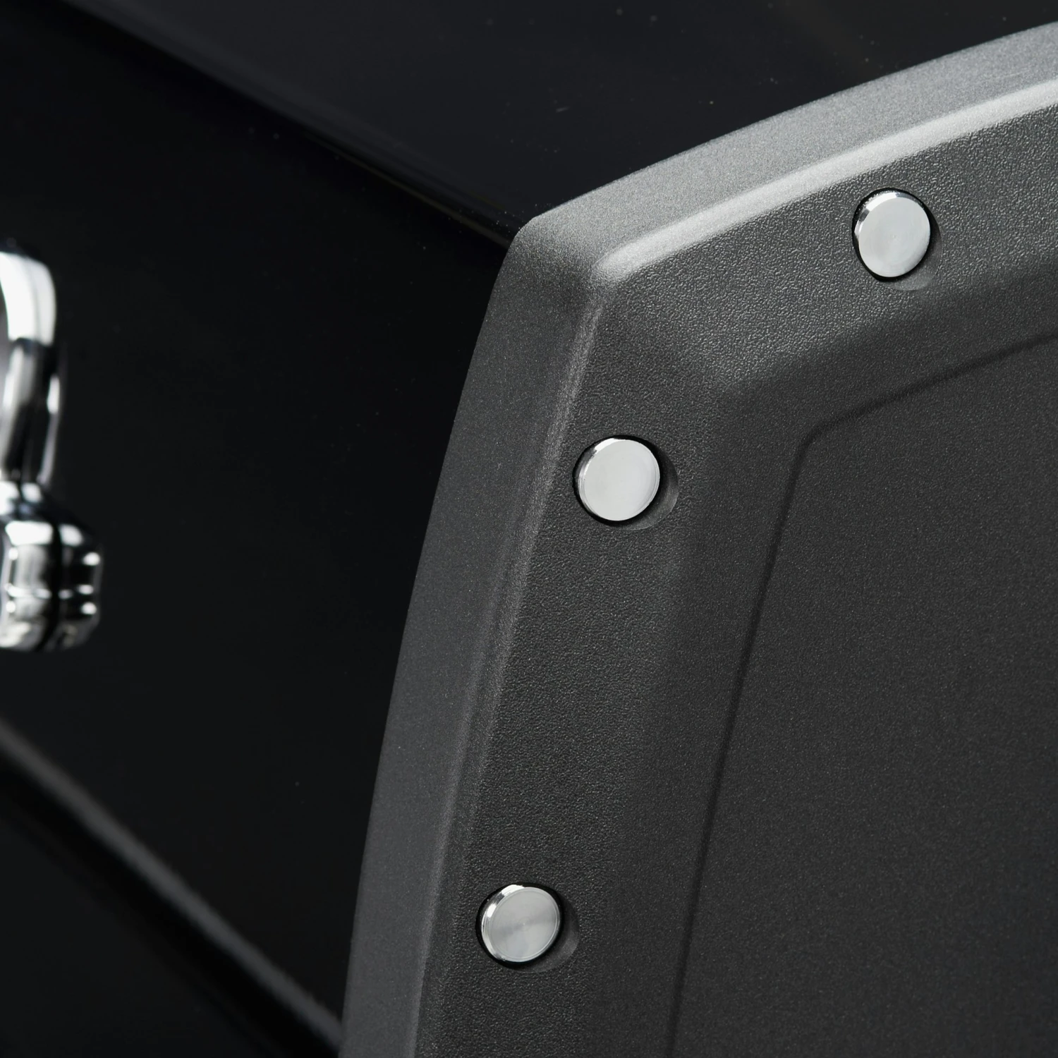 Der Regal 590 verfügt über eine sehr große Grillfläche, die mit massiven gusseisernen Grillrosten ausgestattet ist. Weiterhin ist der Grill mit 5 Edelstahl Dual-Tube Brennern, Flav-R-Waves, einem geschlossenen Unterwagen, Edelstahlseitenablagen, sowie einer LED-Knopfbeleuchtung ausgerüstet. Die Türen sind in schwarz lackiert und der doppelwandige Deckel ist schwarz emailliert.