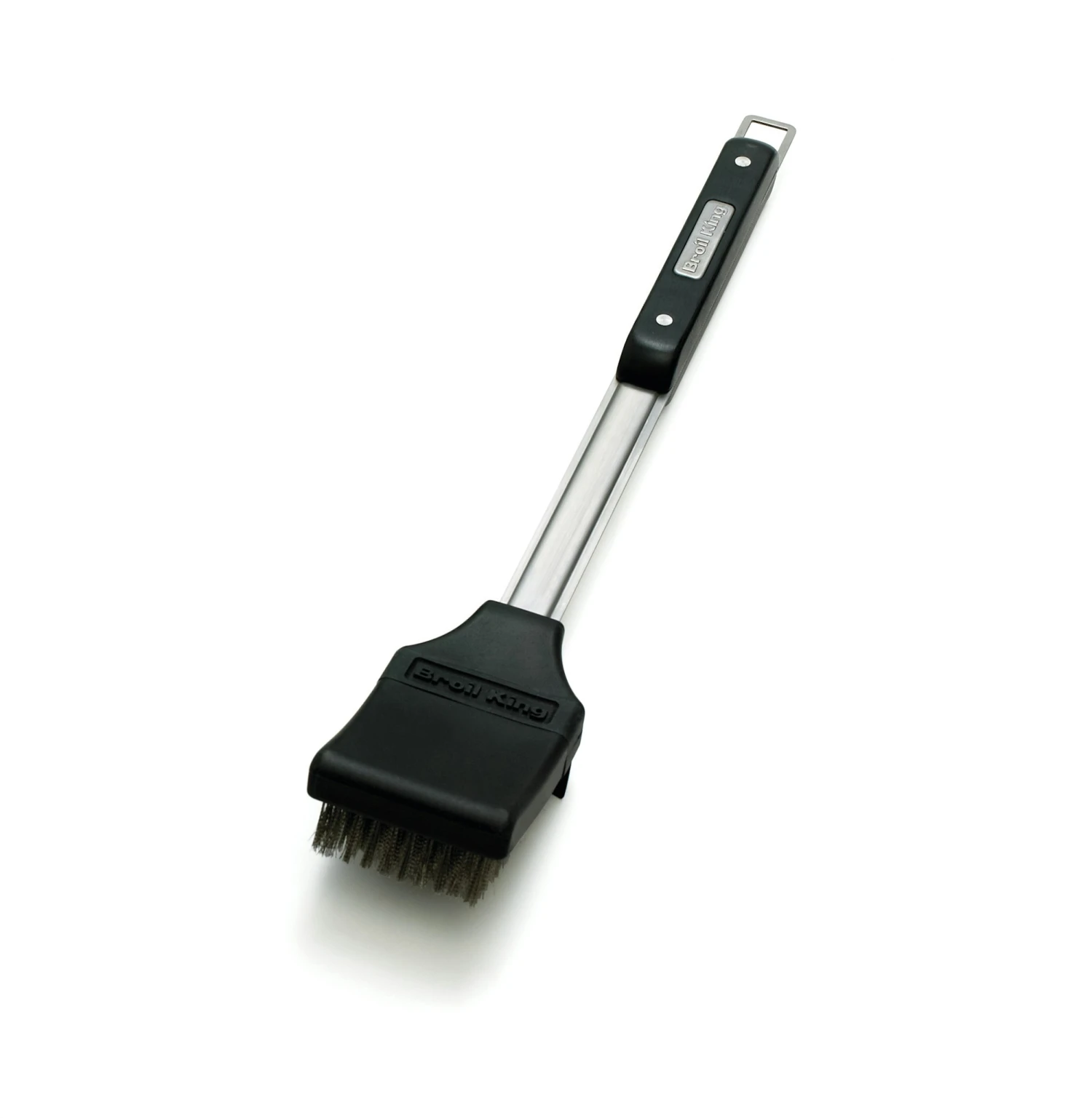 Die aus Edelstahl gefertigte Grillbürste von Broil King bietet einen innovativ geformten Bürstenkopf , um die natürliche Bürstbewegung bestmöglich zu unterstützen. Der integrierte Spritzschutz sorgt dafür, dass beim Abbürsten Ihrer Grillroste kein Schmutz in Ihre Richtung geschleudert wird.