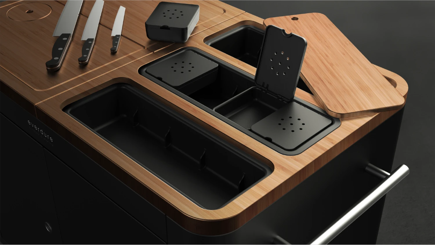 Mit der mobilen outdoor Küche von Everdure sind Sie perfekt organisiert für alle Zubereitungsarbeiten beim Grillen. Durch 4 feststellbare Räder, kann sie kinderleicht bewegt werden.