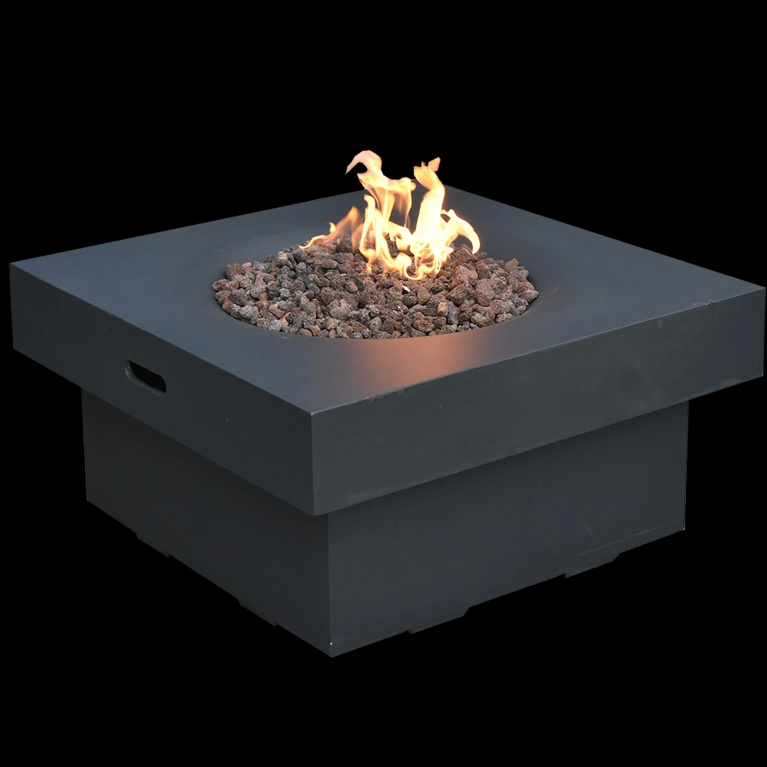 Gardenforma Gas Feuerstelle Branford aus Faserbeton in Betonoptik, schwarz. Dekorative Gas-Feuerstelle aus hochwertigem Faserbeton Werkstoff in Premium-Betonoptik. Mit dieser Feuerstelle setzen Sie ein Highlight in jedem Garten und auf jeder Terrasse. Zum Zubehör gehören bräunliche Lavasteine, eine Edelstahl-Brennerschale sowie ein Schutz der Zündvorrichtung. Maße: L 87 x B 87 x H 43 cm