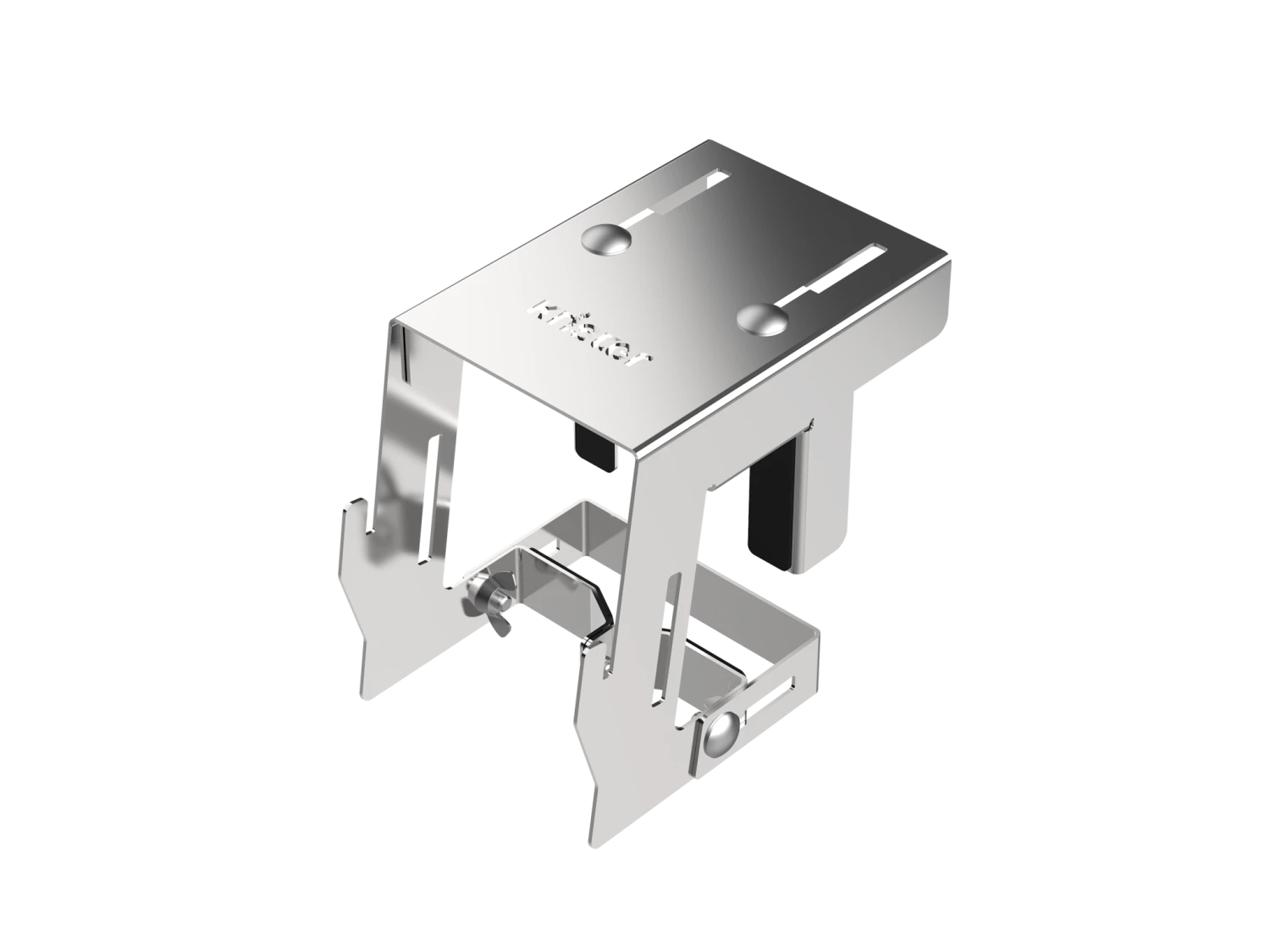 Knister Balkon- Relinghalterung, passend für alle runden, eckigen, gläserne, gemauerten Geländer. 100% Edelstahl. Maße: 10x8x10 cm
