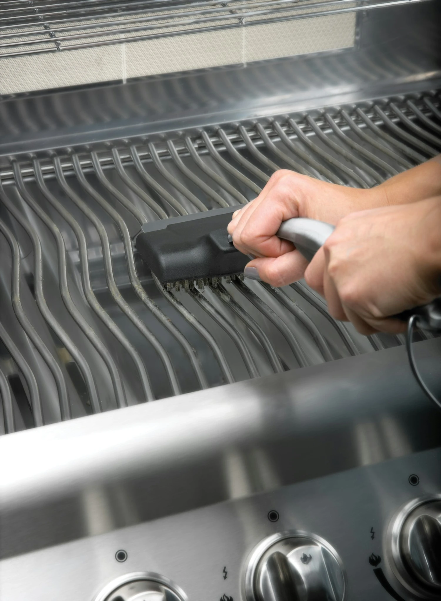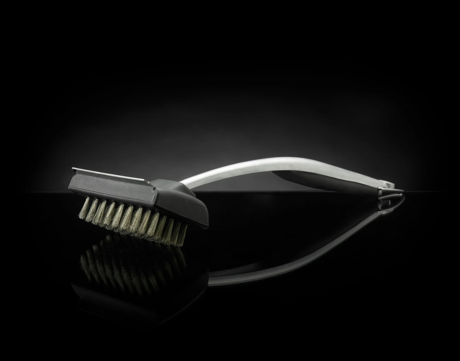 Die NAPOLEON Grillbürste aus hochwertigem Edelstah l wurde mit Edelstahlborsten versehen und sorgt für glänzend-saubere Grillroste. Zudem ist sie etwa 42 cm lang und liegt mit ihrem rutschfesten Griffelement besonders gut in der Hand. So lässt sich einfach Druck ausüben und Speiserest vom Grillrost mühelos entfernen. An der integrierten Aufhängeöse lässt sich die Grillbürste auch einfach aufbewahren. Ist der Bürstenkopf von der regelmäßigen Reinigung abgescheuert, brauchen Sie nicht gleich die ganze Bürste auszutauschen. Verwenden Sie einfach den Ersatzbürstenkopf samt Reinigungsschwamm und schon können Sie Ihren Grill wieder wie gewohnt reinigen.