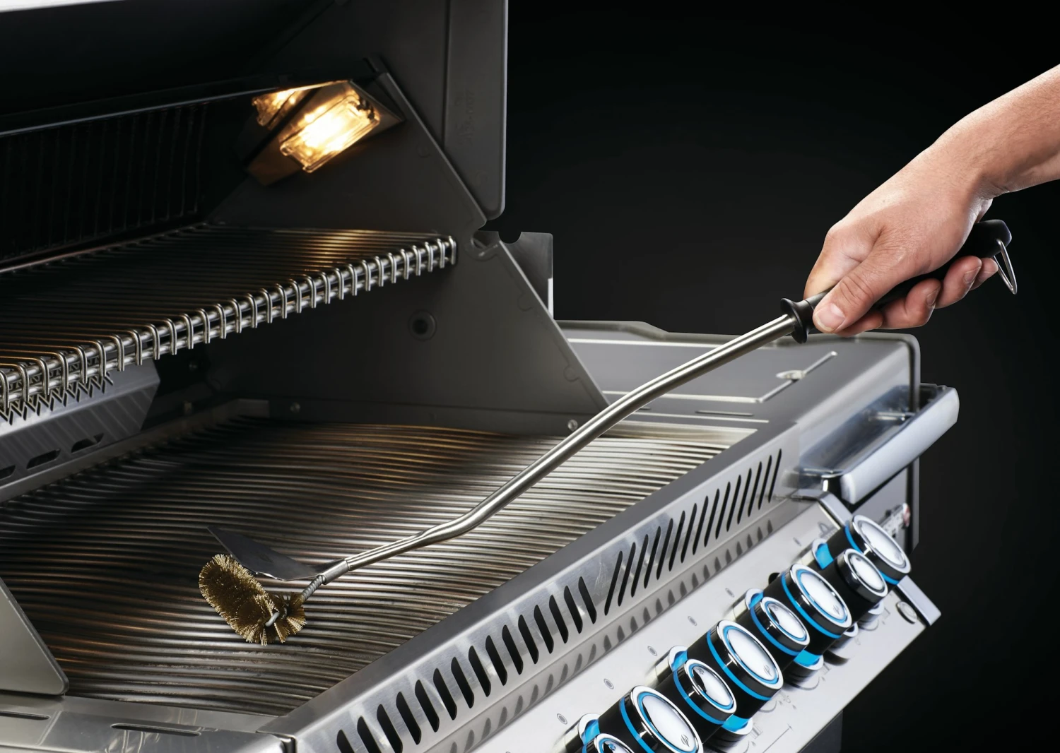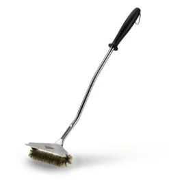Grillbürste mit Messingborsten von Napoleon verfügt über einen gebogenen Griff, welcher für zusätzliche Hebelwirkung beim Reinigen des Gussrostes, sorgt. Außerdem ist ein extra breiter Grillschaber integriert.