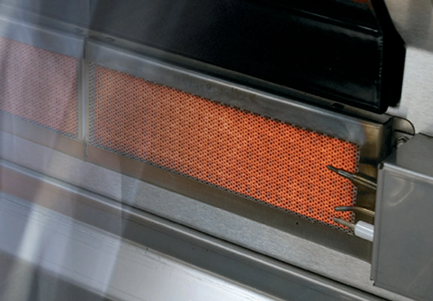 | WAVE Stabgrillrost ausporzellanbeschichtetemGusseisen | Rückseitiger Keramik-Infrarotbrenner |