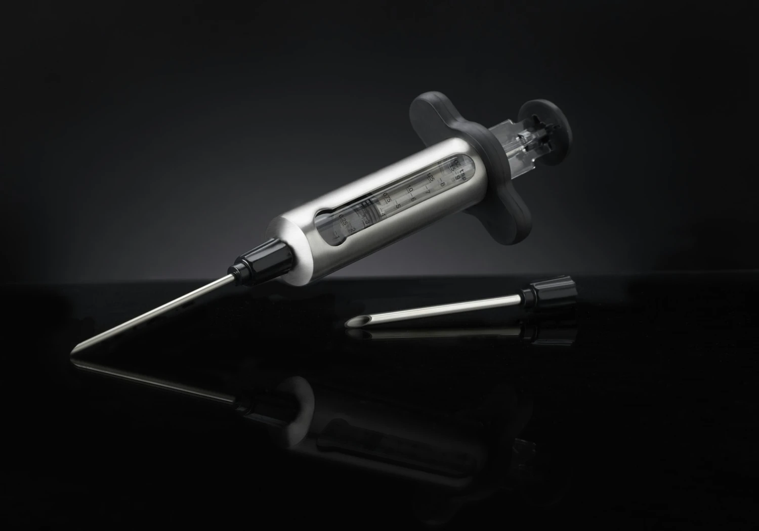 Der NAPOLEON Marinaden Injektor Edelstahl ist einfach zu reinigen und überzeugt durch eine lange Haltbarkeit, da das Gehäuse aus hochwertigem Premium-Edelstahl angefertigt ist. Damit Sie jederzeit alles im Blick haben besitzt der Injektor ein praktisches Sichtfenster mit zwei Skalen die uns anzeigen, wie viel Marinade noch in dem Injektor vorhanden ist. Im Set werden zwei Injektionsnadeln in verschiedenen Durchmessern mitgeliefert, Reinigungsbürsten für die Reinigung der beiden Injektionsnadeln und eine sehr praktische Aufbewahrungsbox, die für alle Teile des Sets einen passenden Aufbewahrungsort bietet. Dank des NAPOLEON Marinaden Injektor werden Ihre Gerichte geschmacksintensiver und safitger als je zuvor.
