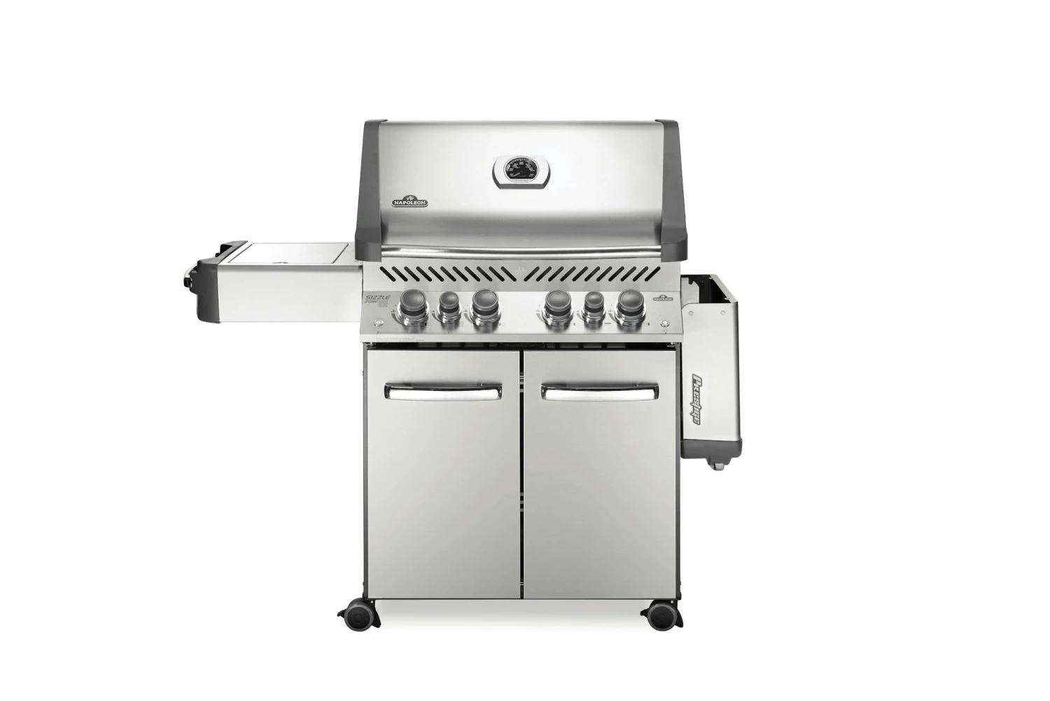 Der Napoleon Prestige 500 vereint unter seiner schicken und platzsparenden LIFT EASE Rollhaube alles, was sich ein Grillmeister vorstellen kann. Mit 4 Hauptbrennern, einem Infrarot-Heckbrenner für Gerichte vom Drehspieß und dem Infrarot SIZZLE ZONE Seitenbrenner für perfekte Steaks ermöglicht vielfältigste Formen der Zubereitung. Auf der großzügigen Hauptgrillfläche plus Warmhalterost lassen sich Familie, Freunde, Nachbarn und der Fußballclub verköstigen. Grillfläche 71 x 46 cm