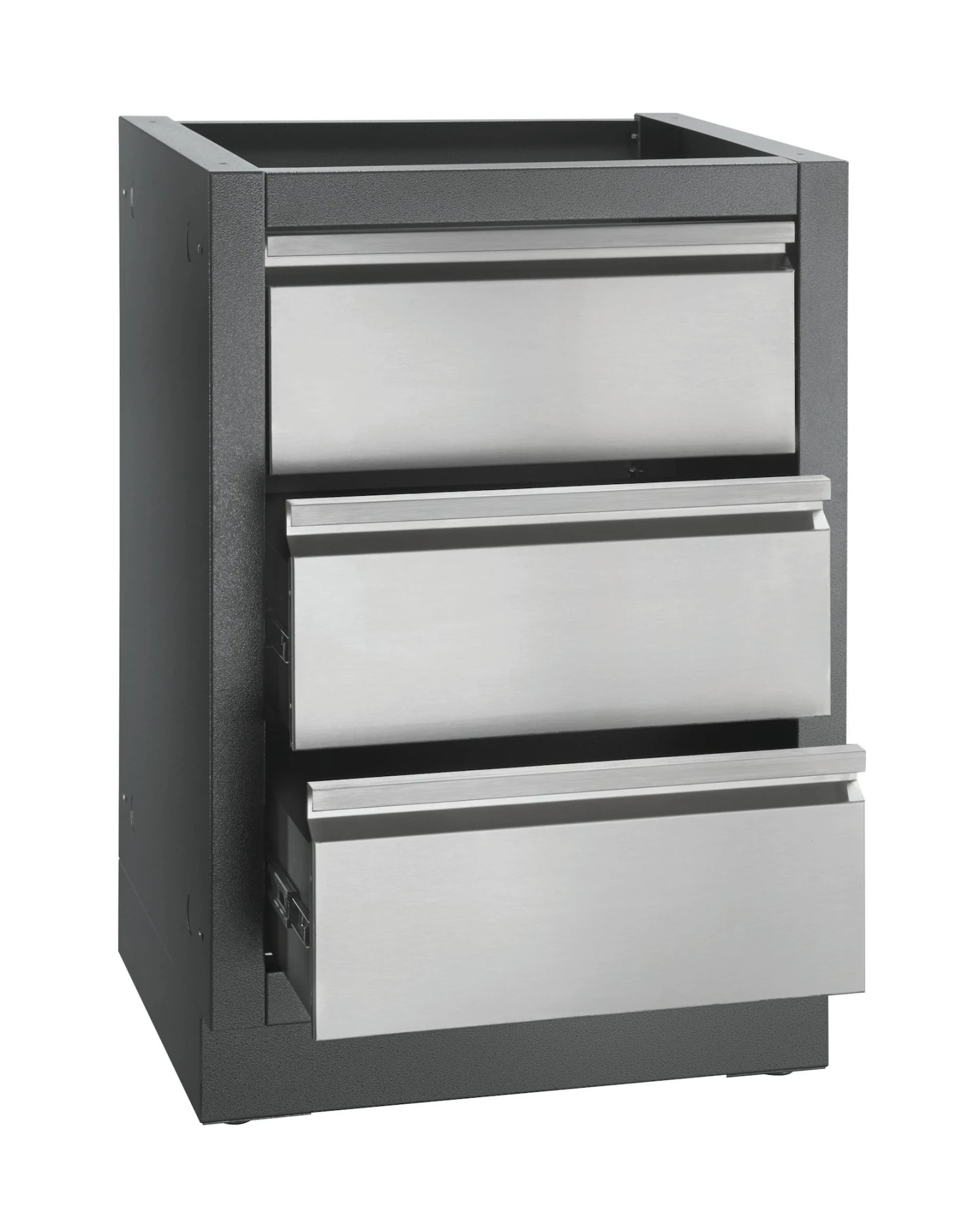 Die NAPOLEON Schubladenschrank (2 Laden + Blende) ist eines von vielen Modulen für Ihre individuelle Outdoor-Küche. Die Schubladen stellen viel Platz für Ihr Grillzubehör bereit und sind dank Rollenlagerung leicht ausziehbar. Die obere Blende ermöglicht es Ihnen verscheidene Module einzubauen (z.B. eine Spüle oder einen Seitenbrenner).