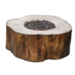 Gardenforma Sitzgruppen-Set: Gas Feuerstelle Vesuv In Basaltoptik Aus Faserbeton & 4x Hocker
