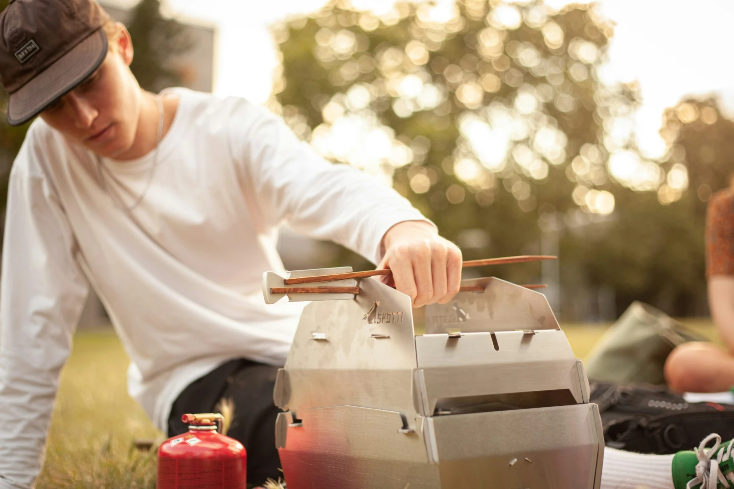 Ergänze deinen SKOTTI mit dem passenden Deckel, dem SKOTTI Cap. Dieser ist Multifunktional z.B. Die Ofenfunktion (Pizza, Low and Slow), Windschutz, Toastfunktion usw. Dazu ist die Cap (Deckel) leicht und kompakt und passt zusammen in die SKOTTI Tasche mit rein. Diese ist natürlich genau wie der SKOTTI , leicht und mit wenigen Handgriffen aufgebaut. Die aus hochwertigen Edelstahl gebaute Cap wird nachhaltig und in Deutschland produziert.